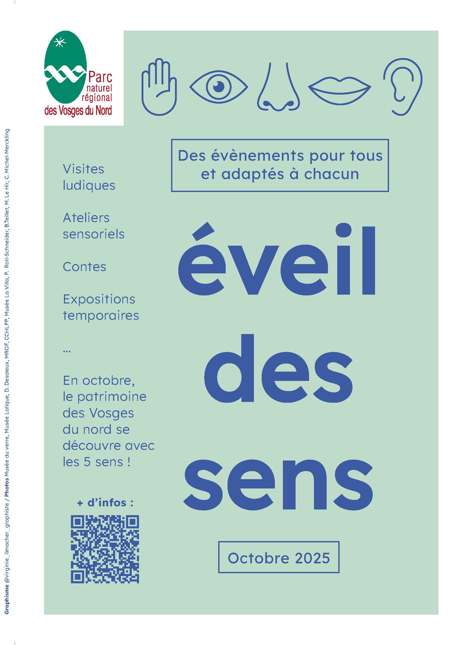 Depuis 2015, de nombreux sites et musées du Parc naturel régional des Vosges du Nord organisent l’événement Éveil des sens, pour une découverte du patrimoine par tous, avec des visites adaptées à chacun. En famille ou entre amis, participez à de nombreuses animations durant la saison : visites adaptées au public en situation de handicap et ouvertes à tous, spectacles, conférences, cinéma, rencontres et débats… Profitez également de nombreux avantages tarifaires (gratuités, réductions…).